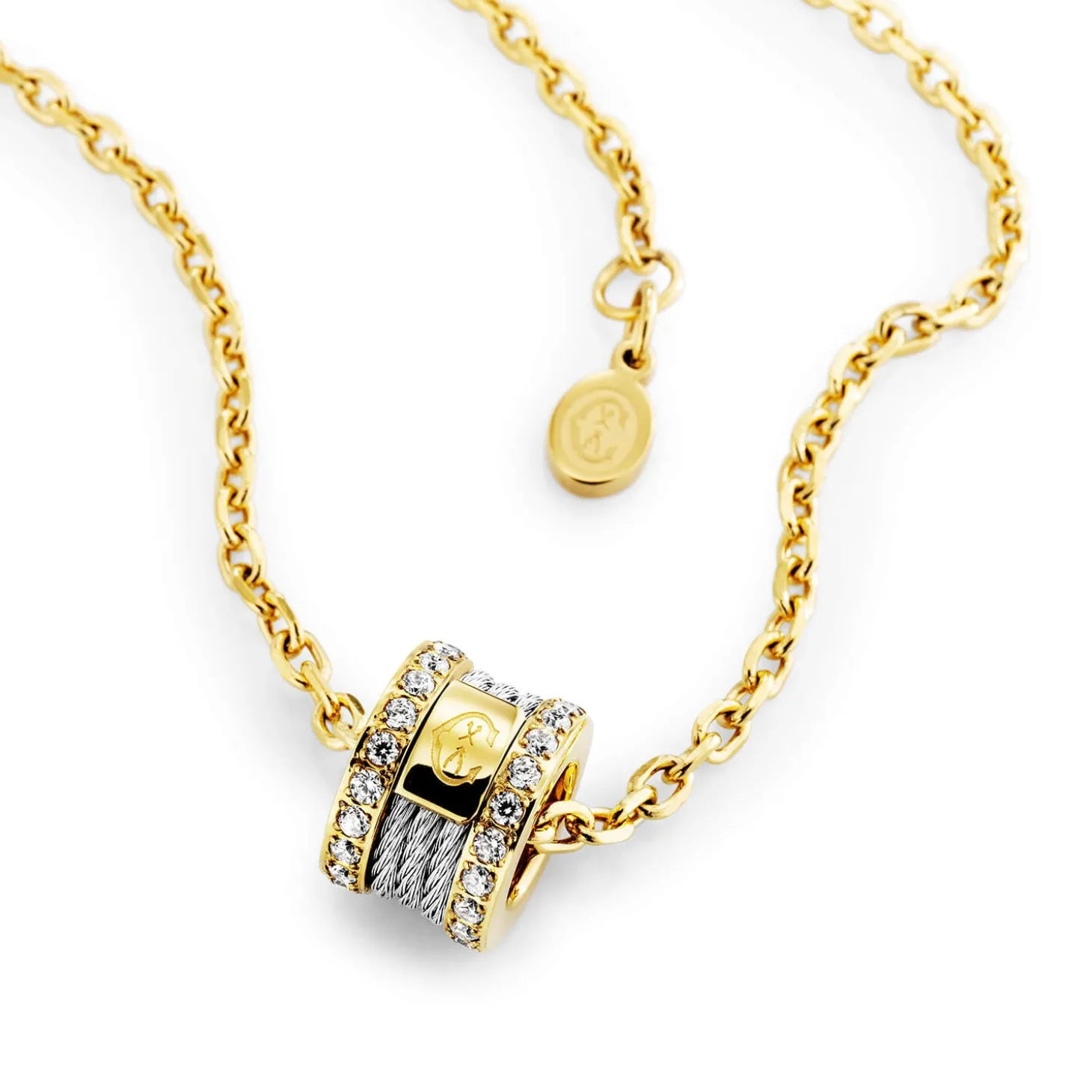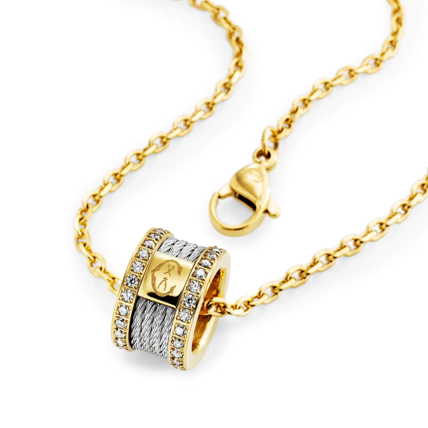 The mini gets an upgrade in the Forever Magnifique, with CZ stones lining the rim of our latest style. Our newest cylindrical charm captures the spirit of the Charriol woman, where substance meets grace and the familiar meets the unexpected. Conjuring the solidity of nautical hardware, the latest design is a study on proportion in the round. The range is timeless – a bangle, ring, earrings and single charmed necklace offer effortless style perfectly suited to daily wear.