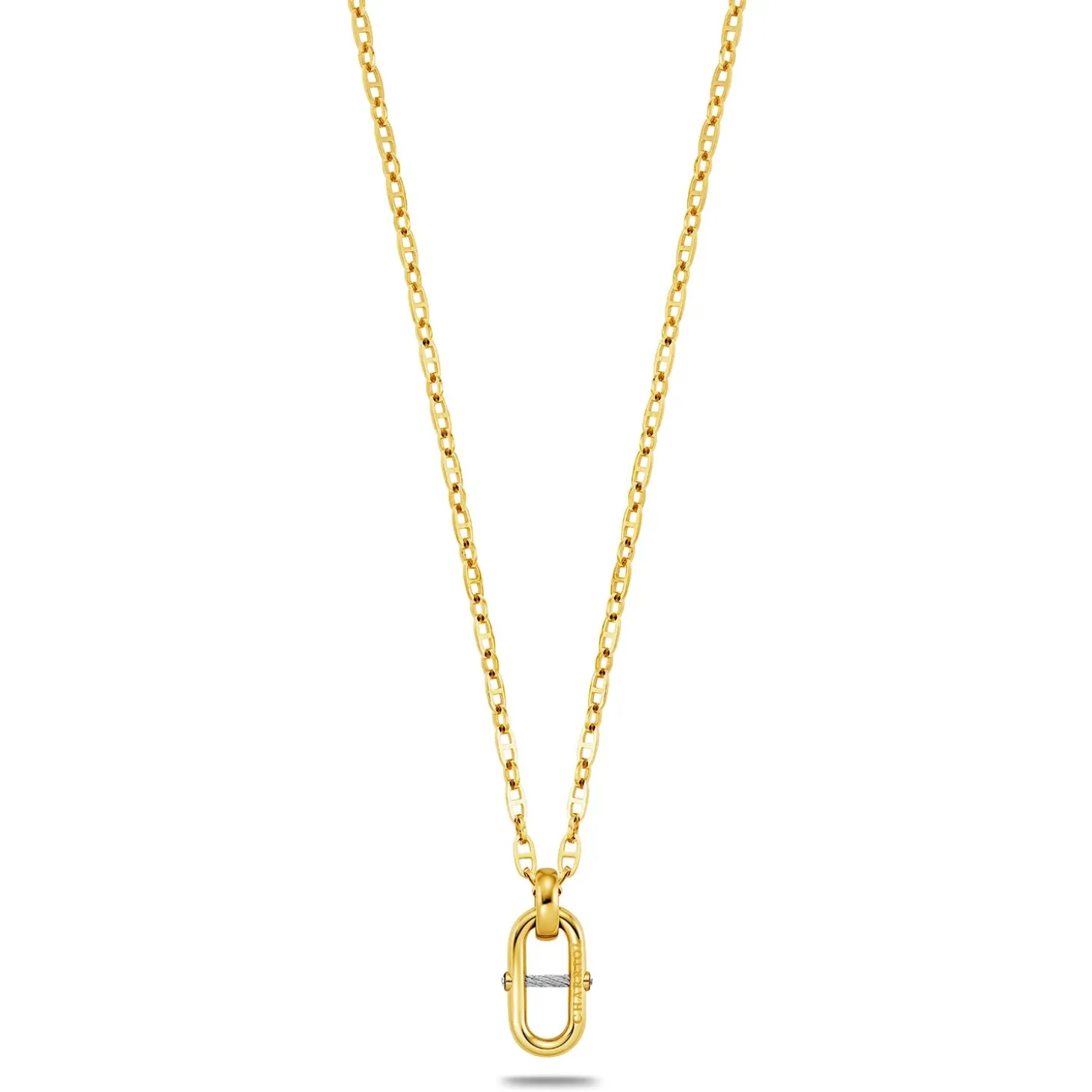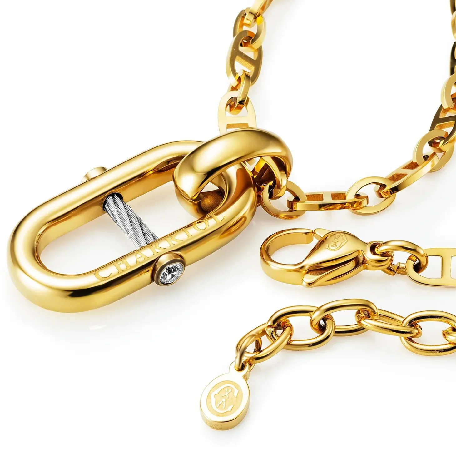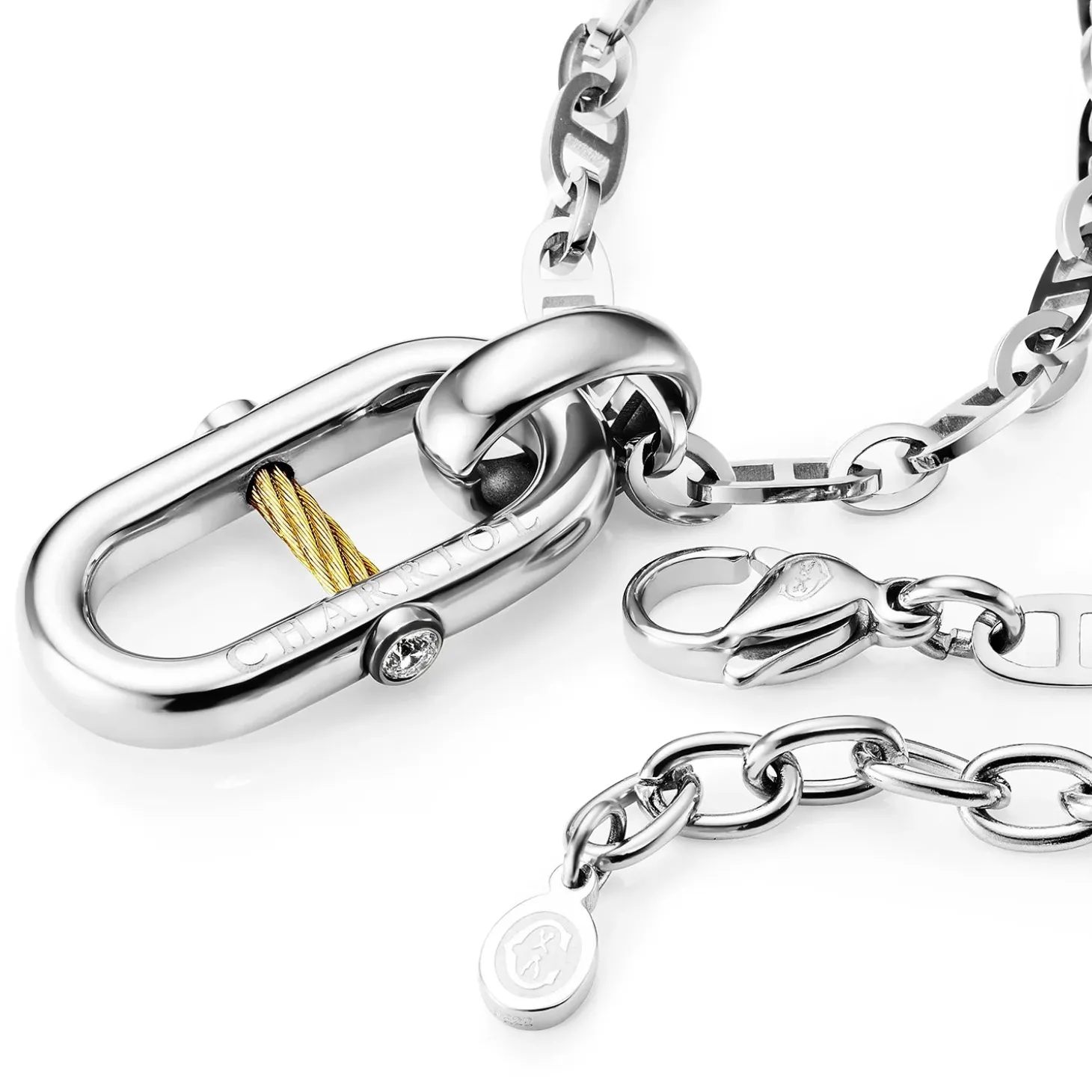 This piece of jewelry is part of the new St-Tropez™ Mariner collection. At the heart of this jewelry collection sits the chain motif, an inspired offering that enriches the universe around Charriol’s best-selling St-Tropez™ watch. Organized into three lines, the chain is reinterpreted through a mix of metals, motifs and charms, on bracelets, earrings, rings, long and short necklaces – all designed to be mixed and matched. The result is a modern, bespoke set, evoking the harbor views, sounds and excitement of the French seaside resort of Saint-Tropez.