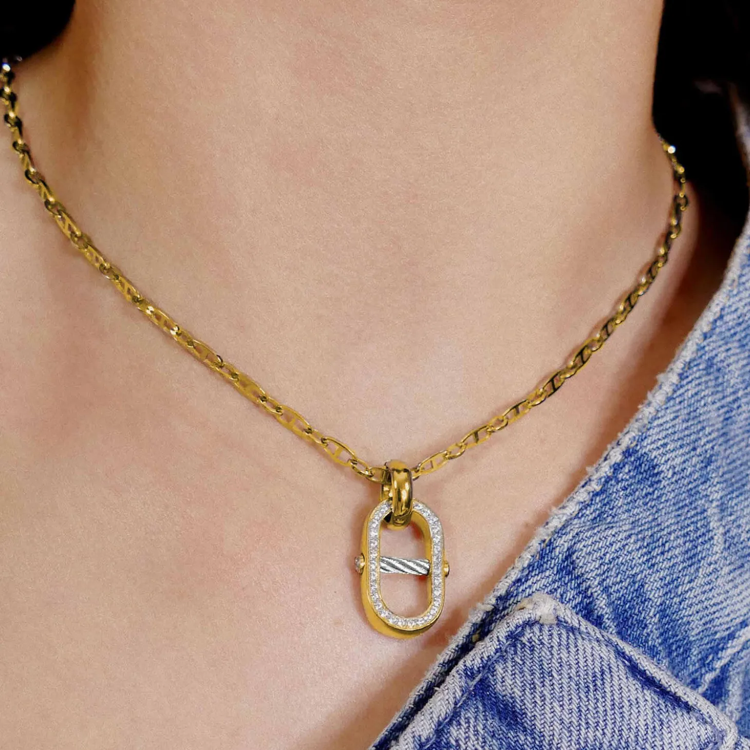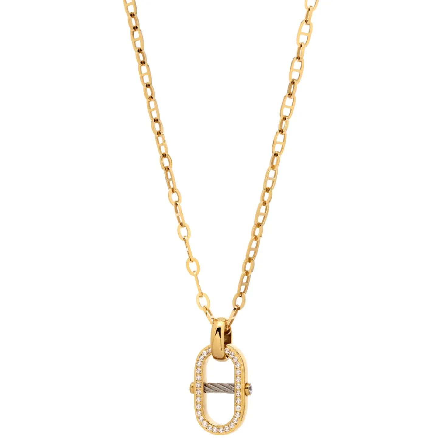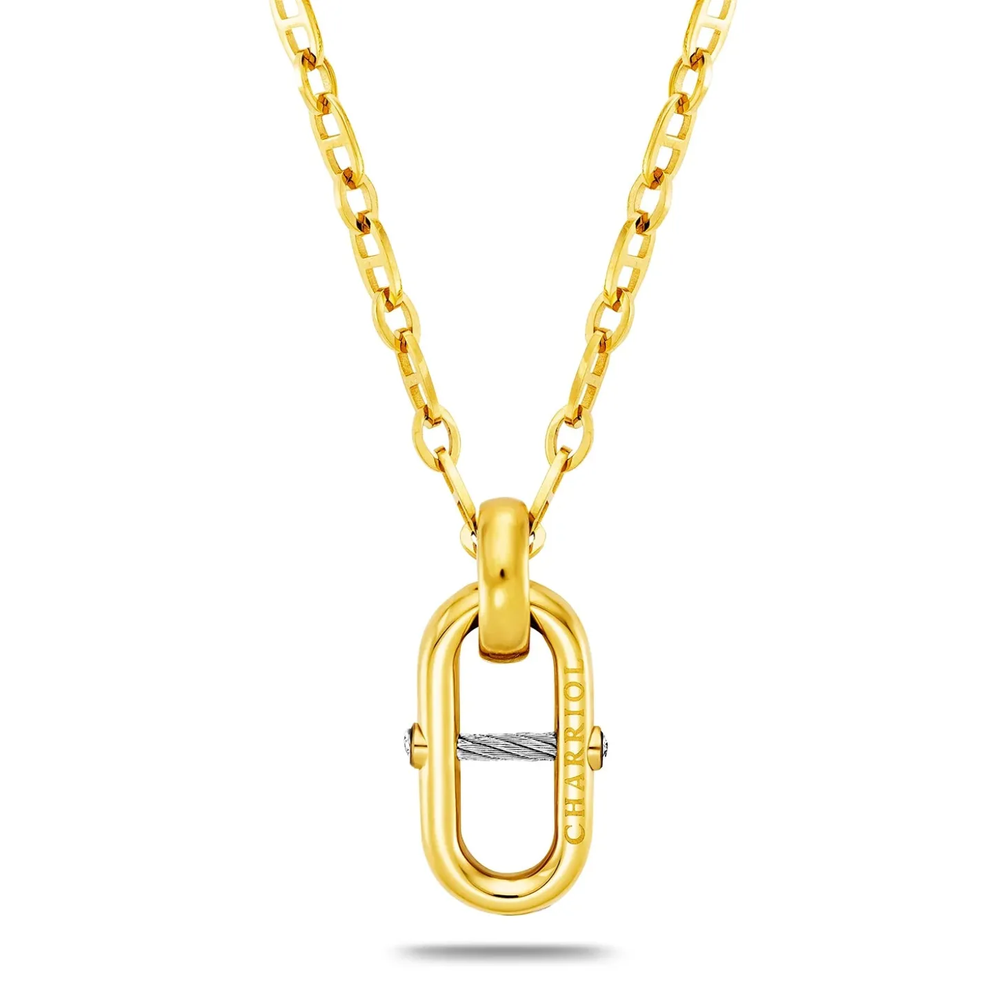 This piece of jewelry is part of the new St-Tropez™ Mariner collection. At the heart of this jewelry collection sits the chain motif, an inspired offering that enriches the universe around Charriol’s best-selling St-Tropez™ watch. Organized into three lines, the chain is reinterpreted through a mix of metals, motifs and charms, on bracelets, earrings, rings, long and short necklaces – all designed to be mixed and matched. The result is a modern, bespoke set, evoking the harbor views, sounds and excitement of the French seaside resort of Saint-Tropez.
